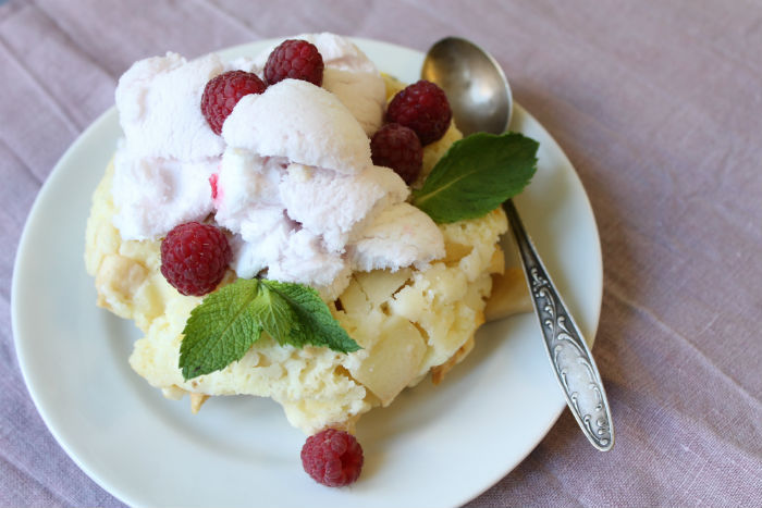 Летний десерт с малиной, ягодами и мороженным! Шарлотка из безбелковой смеси для выпечки МакМастер для приготовления кекса ванильного и мороженое из безбелкового десерта МакМастер со вкусом малины.
